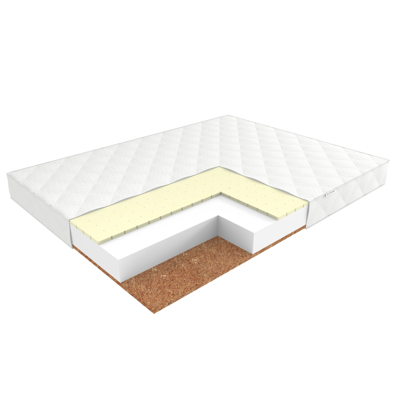 прочно скреплены в цельную плиту. Кокосовое волокно придает матрасу жёсткость и