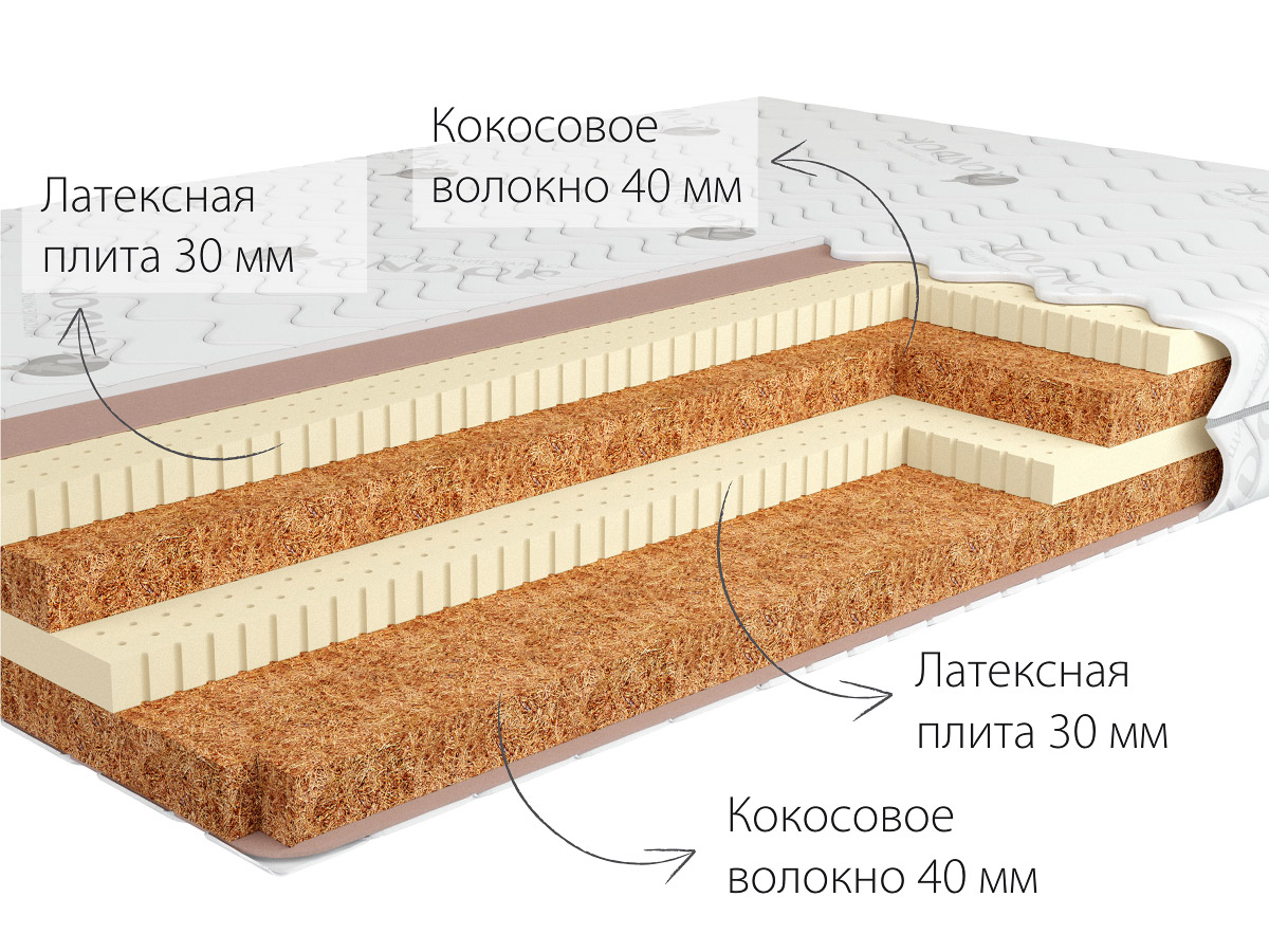 и хорошо отдохнуть. Чередование слоев натурального латекса и листов кокосовых